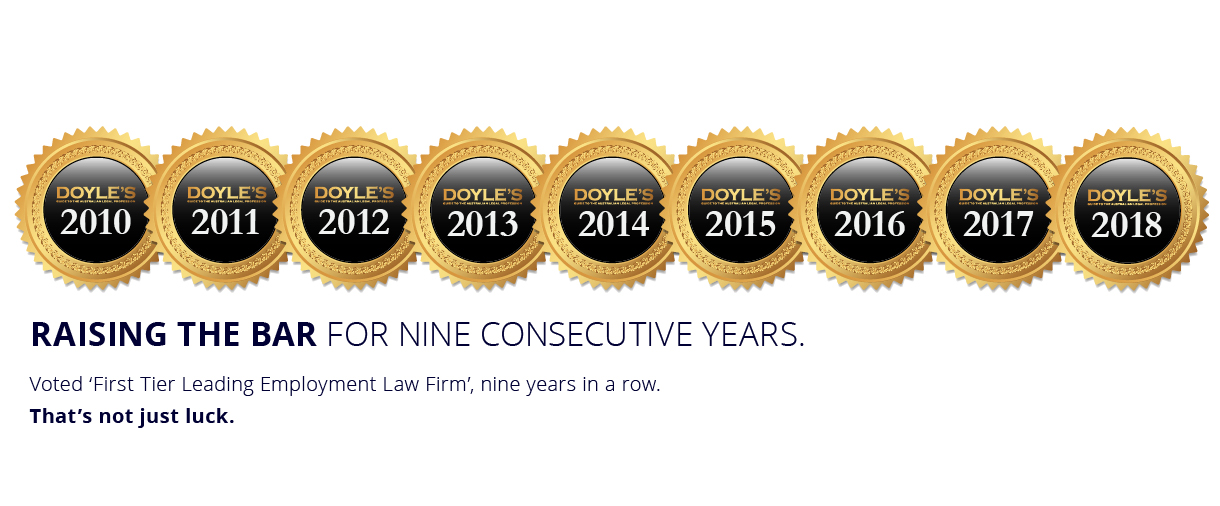 The independent publication, ‘Doyle’s Guide to the Australian Legal Profession’ lists EMA Legal as a ‘First Tier’ practice in the employment law and industrial relations field. Our Partners also hold a number of ‘Preeminent’ rankings in their individual areas of expertise. Read more